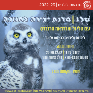 ימים ג' עד ב' | 20-26.12.22 | 8:00-13:00 | כולל ארוחת עשר